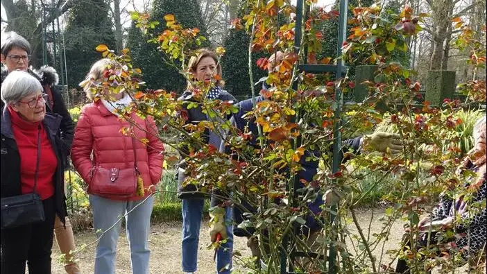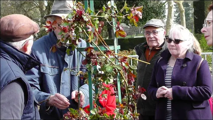 Ce matin-là, 24 adhérents se sont retrouvés aux Prés Fichaux afin d’écouter attentivement les conseils de Jean-Claude et Claire sur l’art de tailler les rosiers.