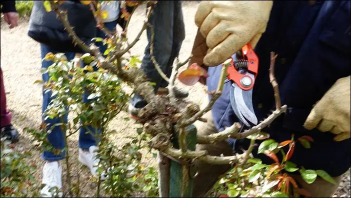 Lorsqu’on supprime une branche, il faut couper le plus bas possible au-dessus du point de greffe. Cela stimule la formation de nouveaux bourgeons qui donneront des pousses vigoureuses.