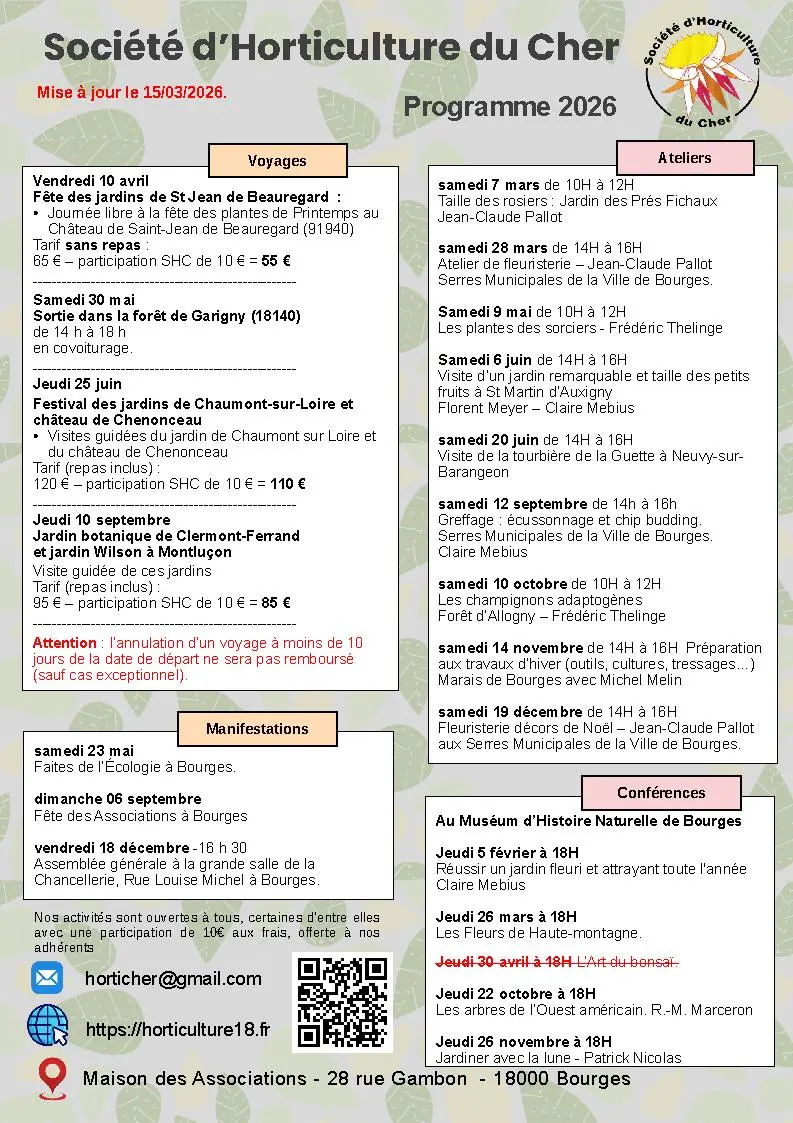 Calendrier de la Société d’Horticulture du Cher